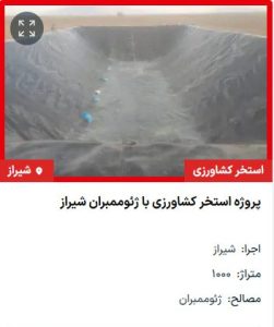 پروژه ساخت استخر کشاورزی و ذخیره آب با بهترین ژئوممبران در شیراز استان فارس توسط گروه صنعتی ژئوخانجانی